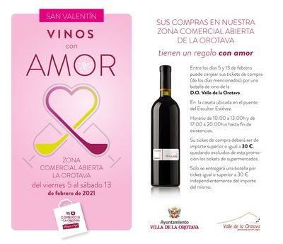 In La Orotava hat sich der Wirtschaftsabgeordnete Felipe David Benítez etwas Besonders einfallen lassen, um die Menschen zum lokalen Einkauf zu animieren. Dort gibt es nämlich „Vinos con amor“ (Weine mit Liebe). Und das geht so: Wer für den Tag der Verliebten in einem Geschäft vor Ort einkauft und dabei mindestens 30 Euro ausgibt, erhält gegen Vorlage des Kassenbons eine Flasche Wein aus dem Orotavatal. Die Kampagne läuft vom 5. bis 13. Februar. An der Puente Escultor Estévez kann der Kunde von 10 bis 13 Uhr und von 17 bis 20 Uhr sein Ticket vorlegen und erhält dafür eine schöne Flasche Wein. Die Aktion gilt solange Vorrat reicht. Ausgenommen sind Lebensmitteltickets.