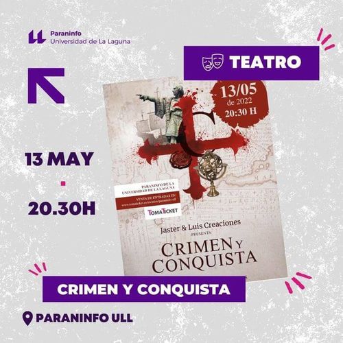 Am Freitag (13. Mai) wird im Paraninfo der Universität La Laguna das Stück „Crimen y Conquista“ mit dem Ensemble Jaster & Luis Creaciones aufgeführt. Die Vorstellung beginnt um 20.30 Uhr. Es geht um die Freundschaft von Christopher Kolumbus und Beatriz de Bobadilla. Karten gibt es für 10 Euro über tomaticket.es.